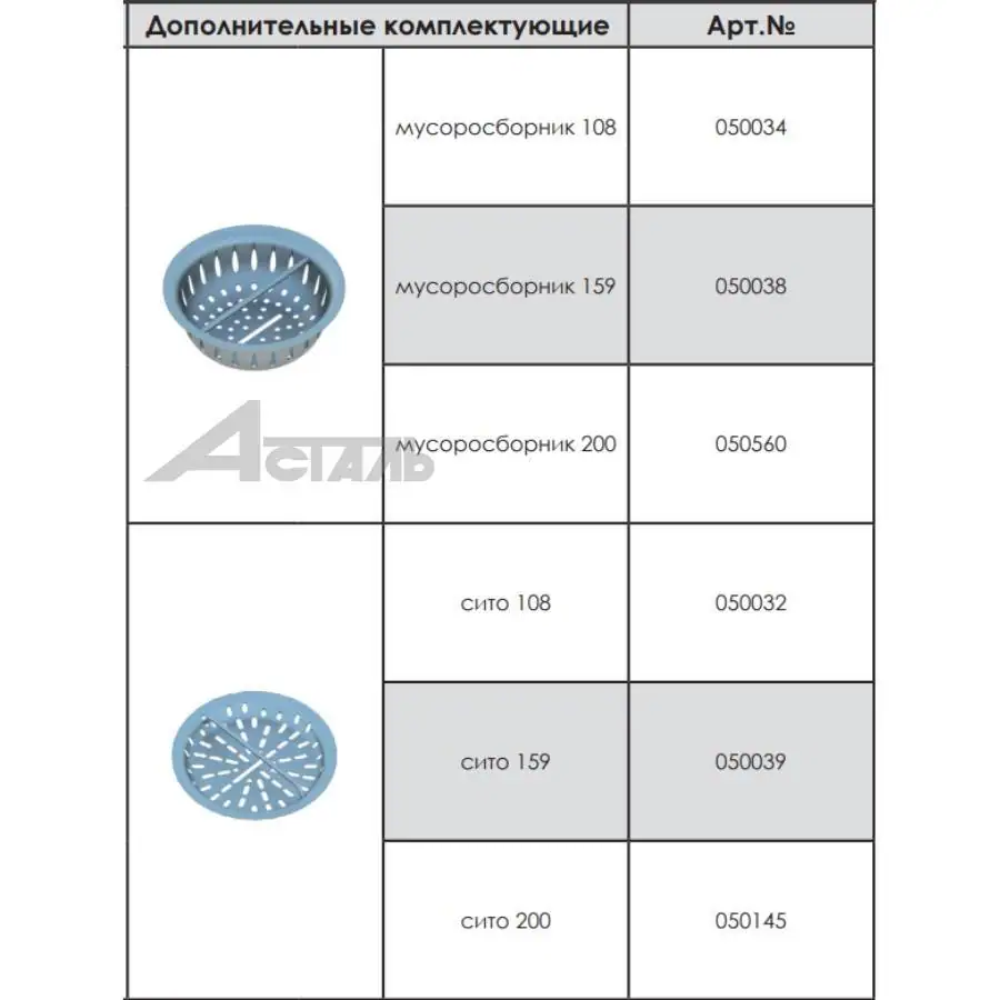 | Марка стали | нержавеющая сталь AISI 304 |